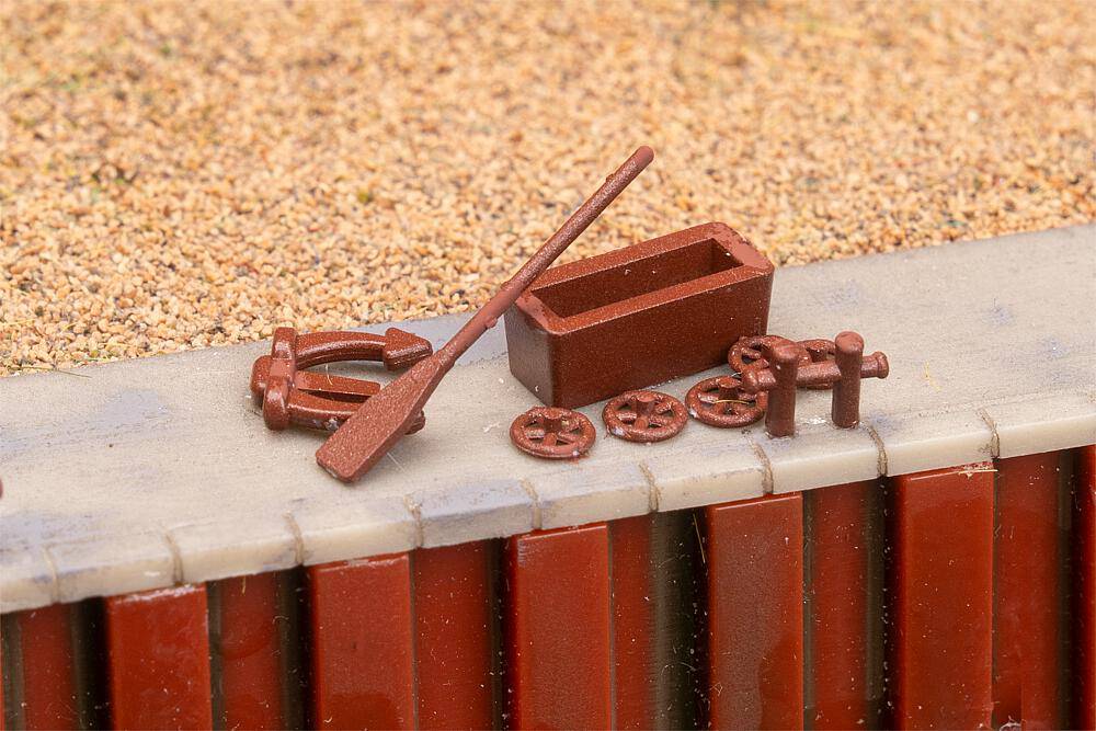 Petits détails pour les ports et les bateaux: Deux pagaies, une ancre, 12 taquets en bois et bien d'autres choses encore pour donner vie à un port de modélisme!