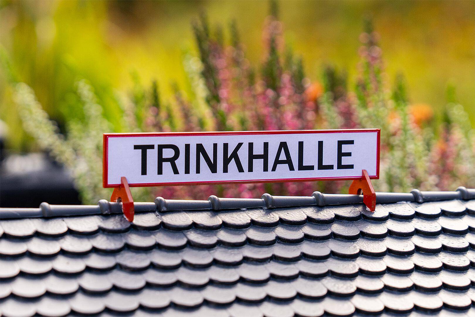Lieu de rencontre convivial pour une petite pause à la campagne! Ce modèle convainc par son design authentique avec un revêtement en bois clair, un toit à deux pans classique avec des tuiles foncées et un store rouge et blanc marquant au-dessus des grandes fenêtres de vente. Le comptoir ouvert permet de voir directement les bouteilles, les verres et les petits snacks. Devant le kiosque, le jardin de bière clôturé avec des chaises de jardin blanches, des tables et un parasol bleu et blanc crée une atmosphère agréable. Des détails charmants tels que des caisses de boissons, un distributeur de cigarettes et des panneaux publicitaires nostalgiques complètent la scène de manière évocatrice!