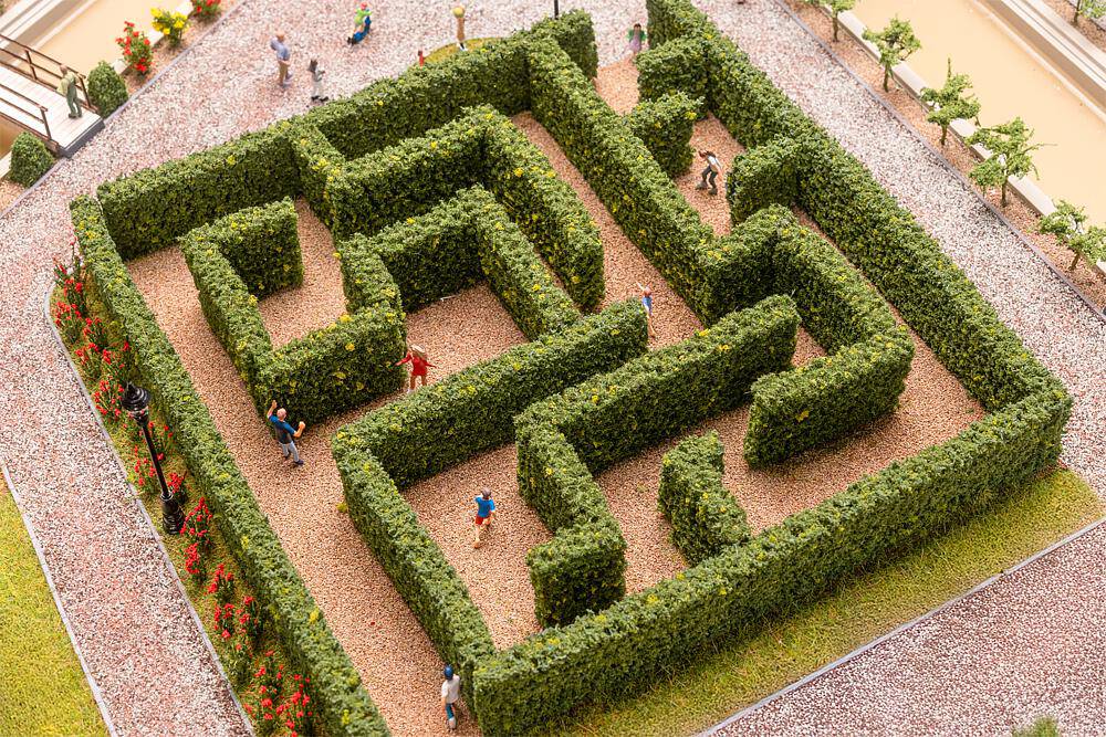 Un labyrinthe de haies enchanteur pour les somptueux jardins de châteaux, les parcs historiques ou les scènes fantaisistes. Les haies vert foncé serpentent à travers des sentiers sinueux et invitent les habitants miniatures à se perdre. Inclut le matériel de saupoudrage assorti pour décorer le sol et obtenir une image d'ensemble cohérente.