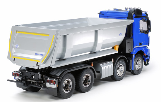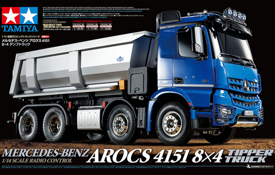 Ce modèle est le premier porteur benne quatre essieux de la gamme RC Tamiya. Il reproduit un Mercedes‐Benz Arocs 4151. Derrière la cabine extrêmement détaillée, la grande benne peut être contrôlée depuis l’émetteur grâce à l’unité d’activation 56545 vendue séparément.