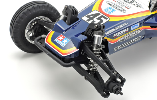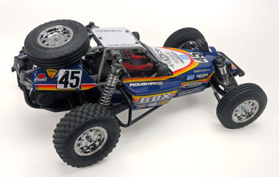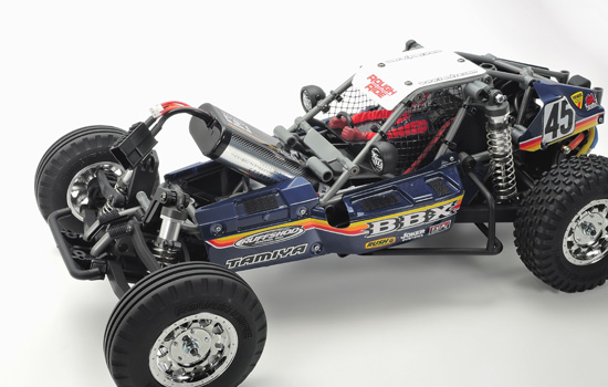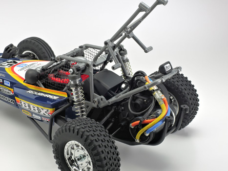 Tamiya est fier d’annoncer un tout nouveau modèle de buggy tout-terrain 1/10 RC 2WD associant un design classique, la modernité des équipements et des performances de haut niveau. Son tout nouveau châssis est un hybride monocoque-cage de protection qui utilise une suspension arrière à bras tirés arrière inspirée de celle des UTV (Utility Terrain Vehicles) réels. La nouvelle carrosserie a été dessinée par le célèbre artiste japonais Atsushi Arino.