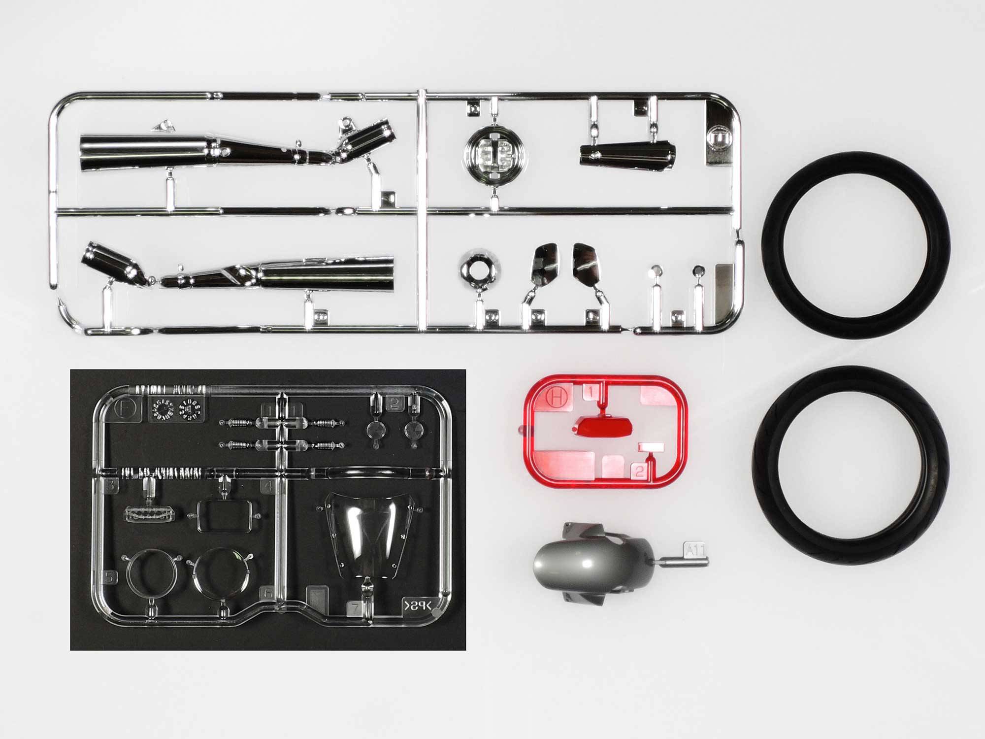 • Pneus avant et arrière en caoutchouc synthétique avec reproduction fidèle des sculptures.