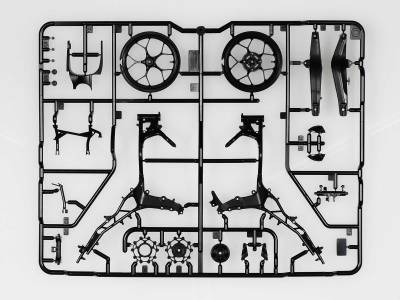 • Sous-ensembles principaux tels moteur, suspensions avant et arrière, silencieux d’échappement et béquille fixés au cadre par micro-vis.