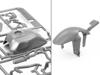 • Réservoir et garde-boue avant en une seule pièce chacun éliminant les ligne de jointure d’assemblage.