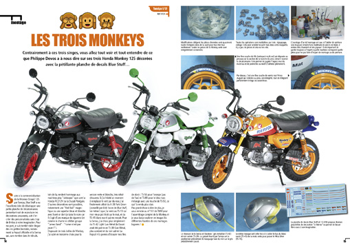 Philippe Devos a monté trois Honda Monkey 125 et les a décorées avec la pétulante planche de decals Blue Stuff.