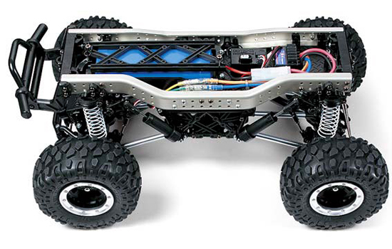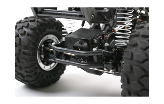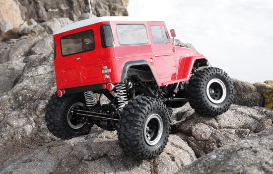 Sur le segment en vogue des Crawlers, Tamiya présente le Toyota Land Cruiser 40, monté sur le tout nouveau chassis CR01 ! Construit autour de 2 longerons en alu léger et équipé de ponts de transmission compact, ce chassis propose un centre de gravité au plus bas grâce à un positionnement des batteries abaissé. Les suspensions à 4 ressorts fournissent la flexibilité requise pour le franchissement. Les amortisseurs inboard, connectés au suspensions, stabilisent efficacement les mouvements du chassis. De nouvelles jantes 3 morceaux permettent de monter les pneus imposants de 125mm de diamètre et de 56mm de largeur.